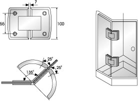 Suitable for installing glass door 800-1000mm wide,8-10mm thick. Door will automatically close at approximately 25º.Available.